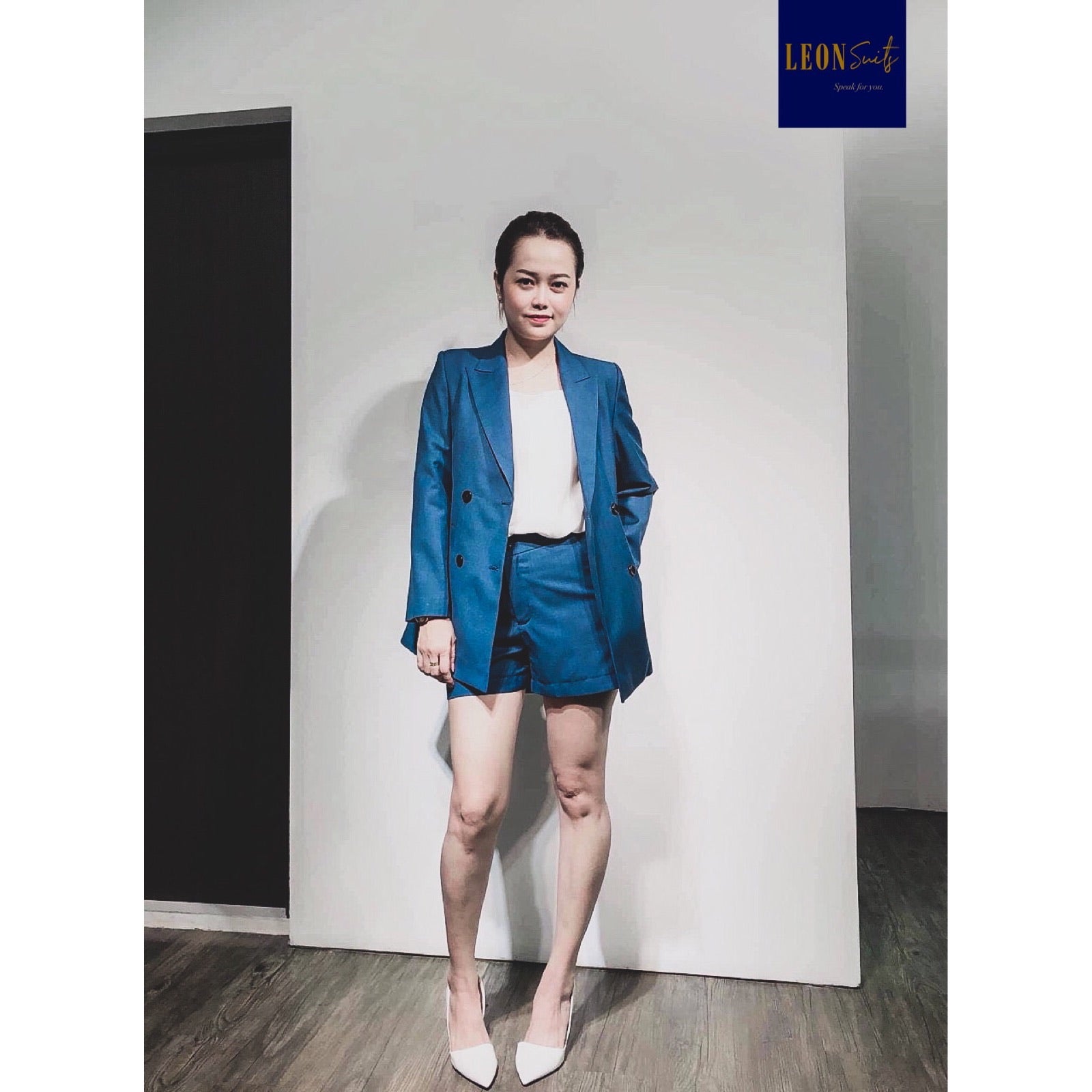 Custom Made Blue Double-breasted Lady Suit with Shorts