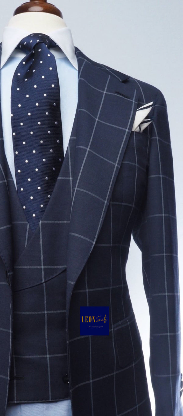 Premium Bespoke Navy w/ Windowpane 3-Piece Suit